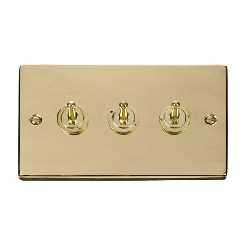 Click Deco 3 Gang 2 Way 10AX Toggle Switch Polished Brass