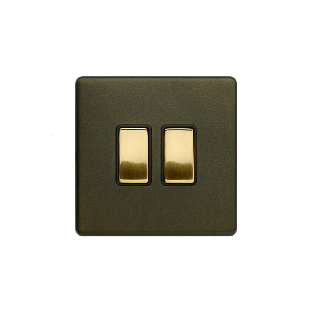 Soho Lighting Bronze with Brushed Brass 2 Gang Intermediate & 2 Way Switch Screwless