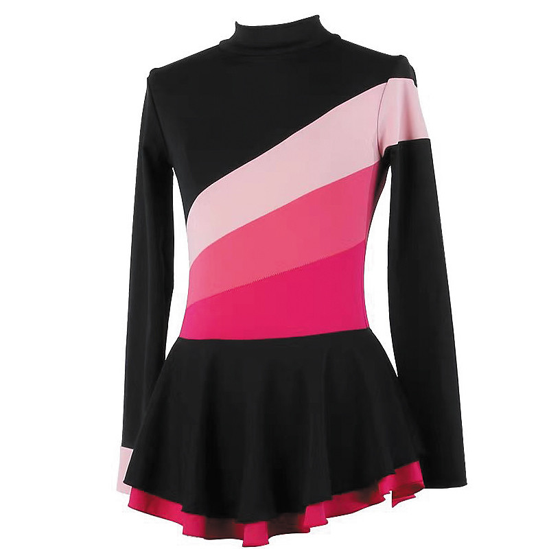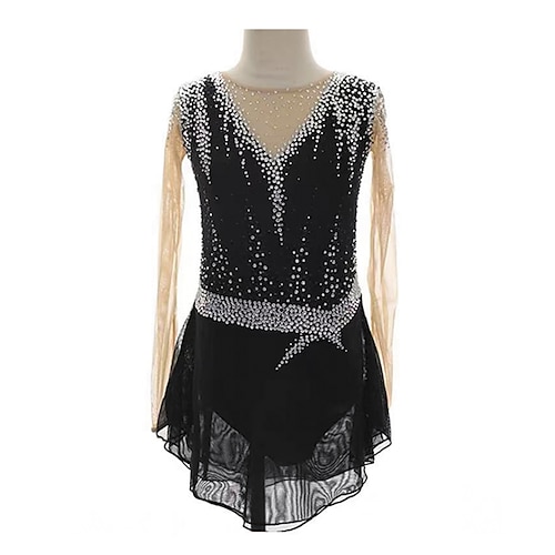 Figure Skating Dress Women's Girls' Ice Skating Dress Black Patchwork Thumbhole Mesh Spandex Stretchy Training Practice Professional Skating Wear Thermal Warm Crystal / Rhinestone Long Sleeve Ice