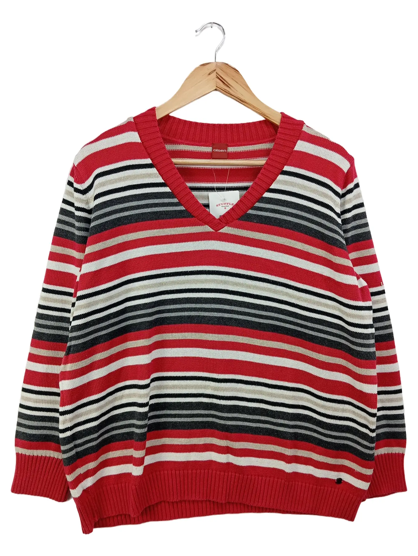 OLSEN Pullover Damen 46 XL rot weiß schwarz gestreift