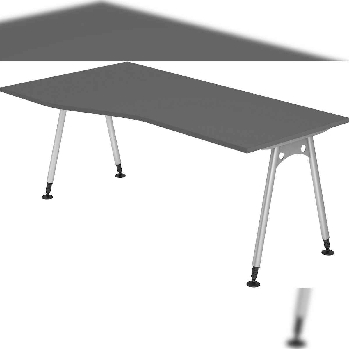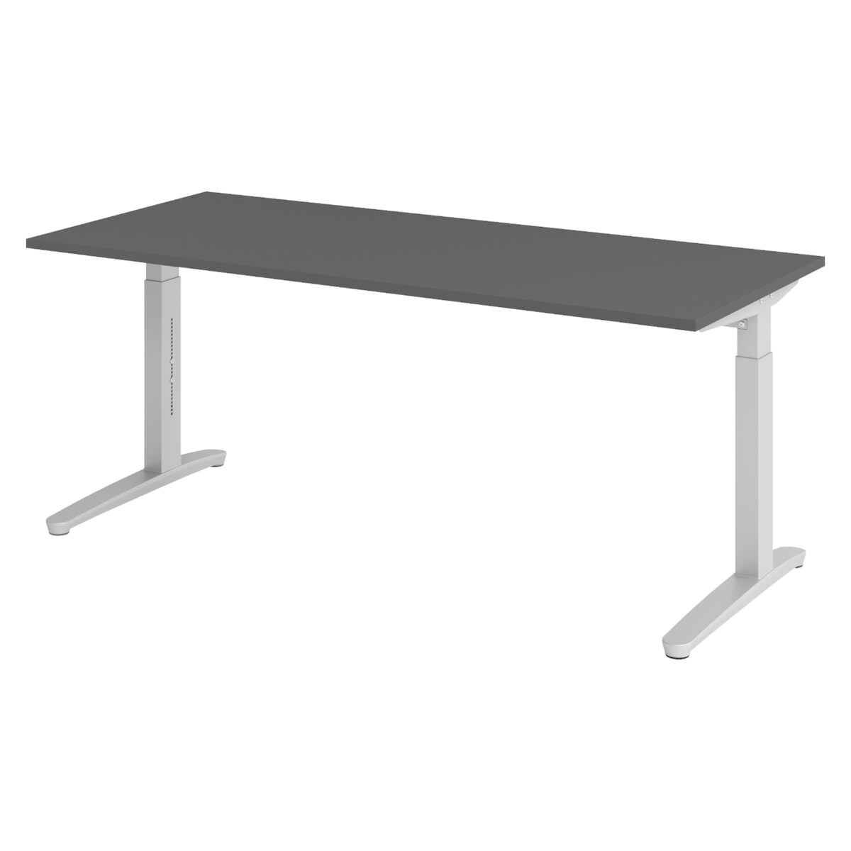 bümö manuell höhenverstellbarer Schreibtisch 180x80 in graphit Gestell in Silber - PC Tisch höhenverstellbar & groß, höhenverstellbarer Tisch Büro,