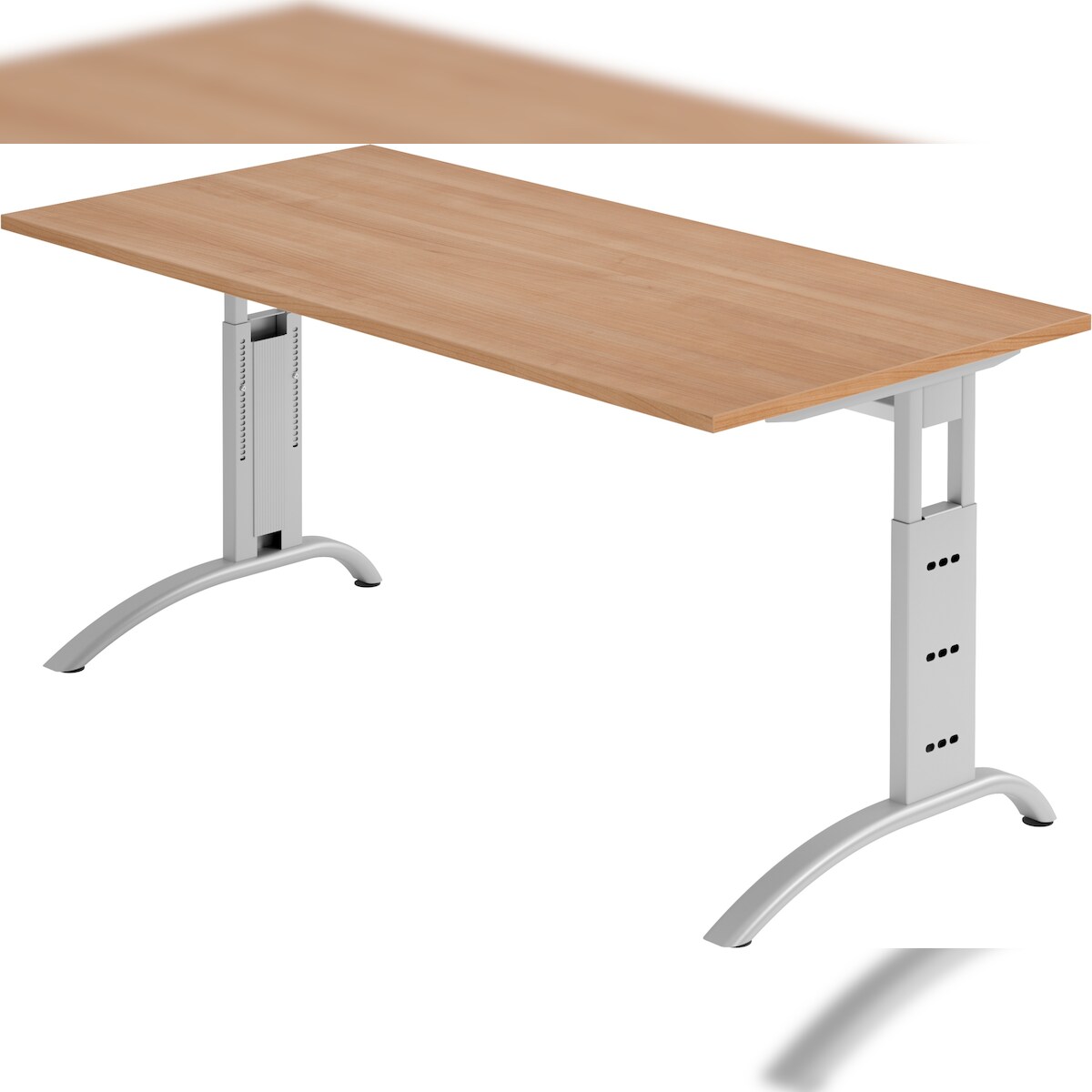 bümö manuell höhenverstellbarer Schreibtisch 160x80 cm in Nussbaum - PC Tisch höhenverstellbar & groß, höhenverstellbarer Tisch Büro, großer