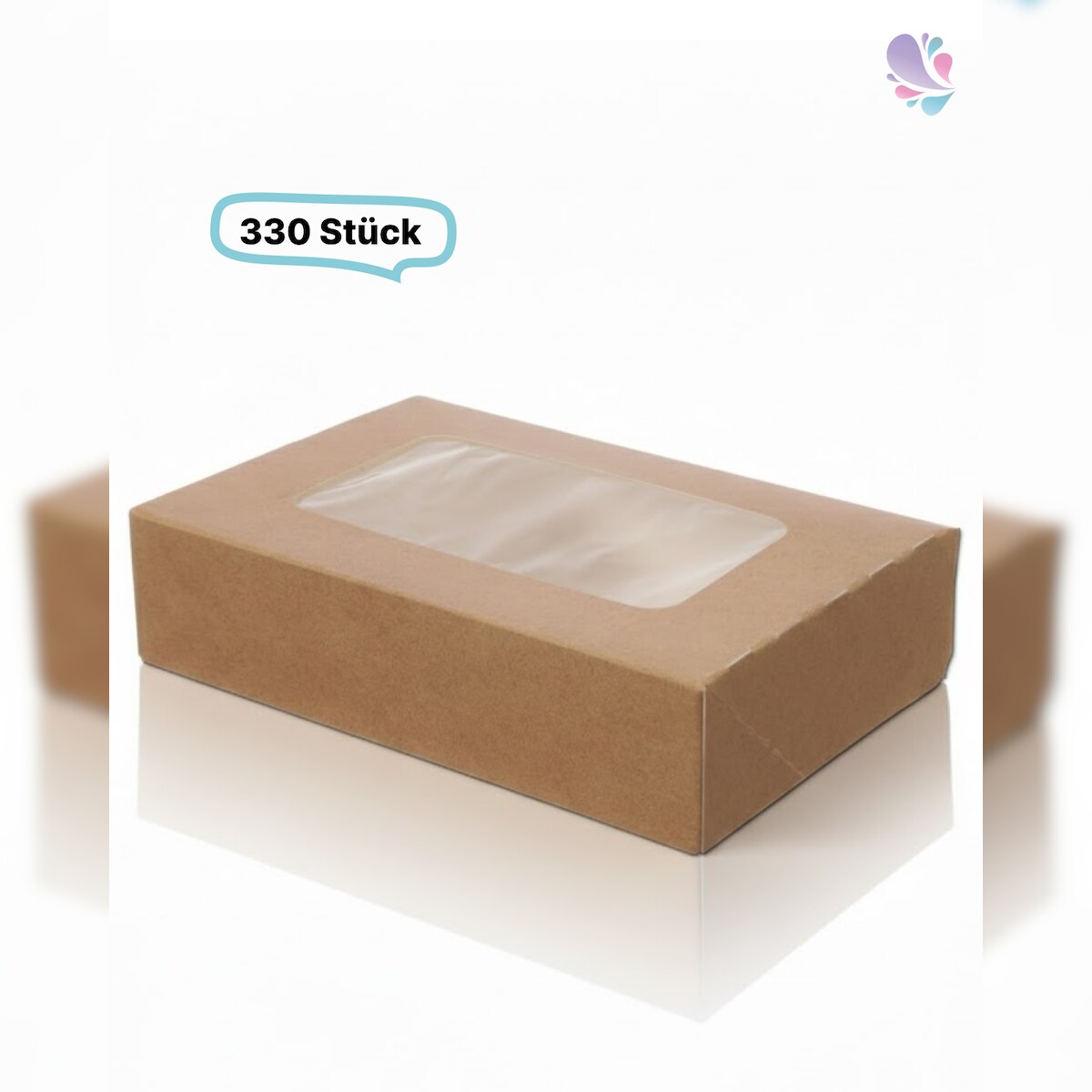 Blanc HYGIENIC Kartonverpackungen Snackboxen mit Sichtfenster, 330 Stück, 16 x 10 x 5 cm, natur, To Go, Größe 1