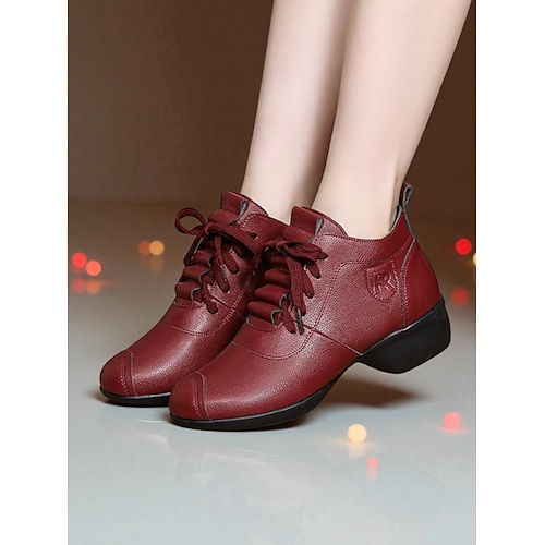 scarpe da ballo da donna in pelle bordeaux - comode scarpe con tacco allacciato per l'allenamento di balli da sala, latino americani e jazz