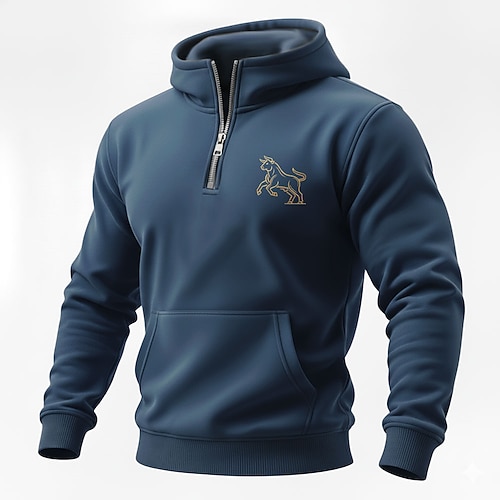 Per uomo Mucca Felpa Quotidiano Classico Casual Cowboy Western Collo alla coreana Zip a un quarto All'aperto Casa Ufficio Lavoro Nero Blu Marrone Verde militare Grigio Con zip Autunno Inverno