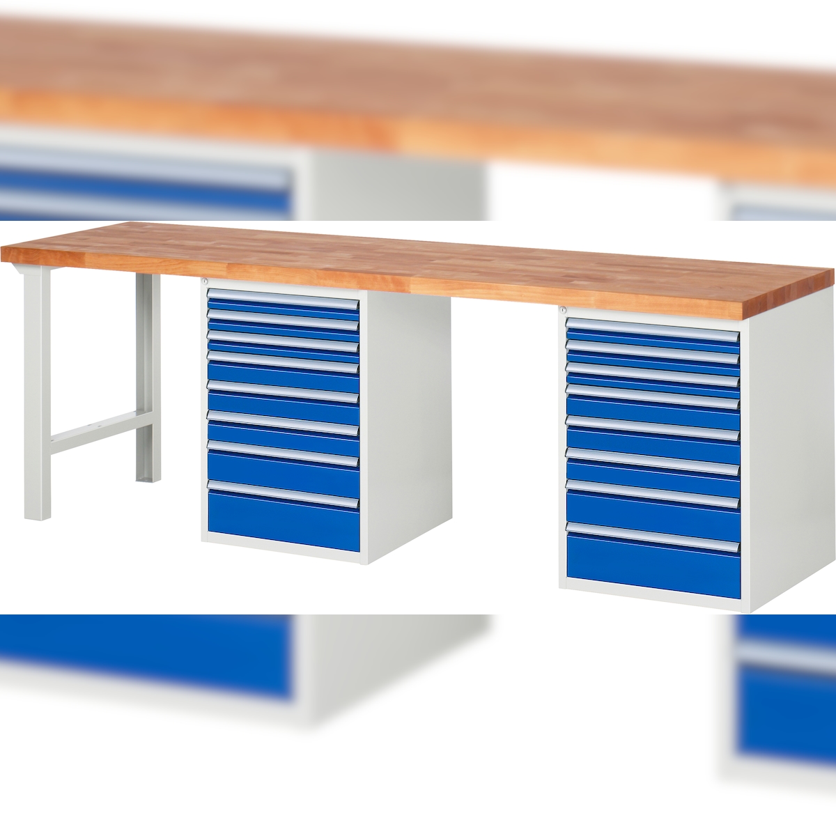 PROREGAL Werkbank Serie 7000 - Modell 7519 | HxBxT 84x250x70cm | 16x Schublade | Schubladenmaße 6x60 + 6x90 + 2x120 + 2x150mm