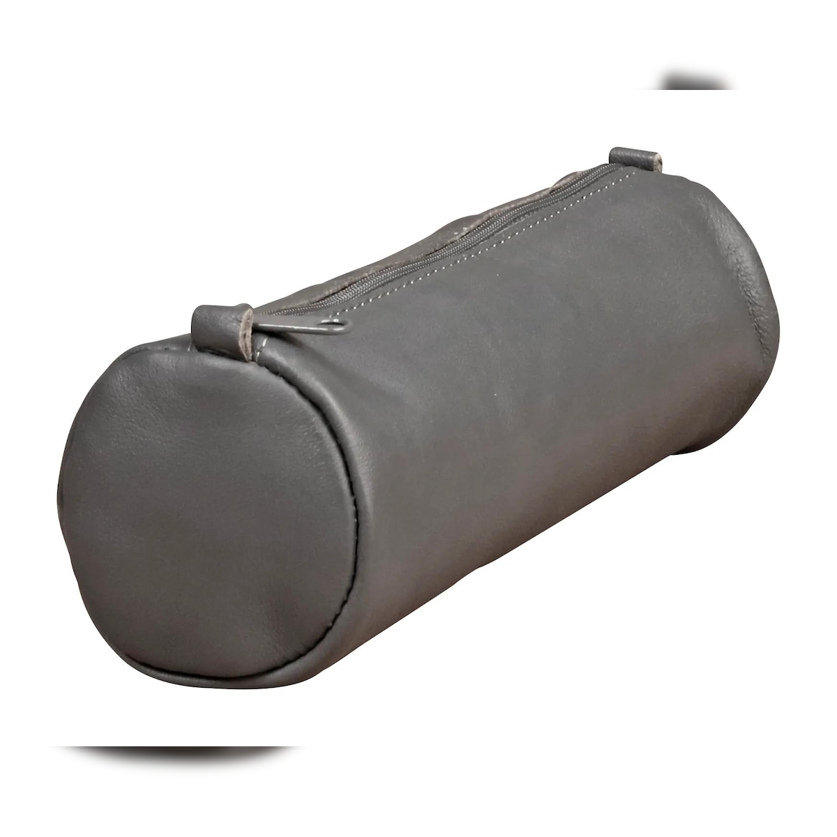 Clairefontaine 8x Age Bag, rundes Schlampermäppchen aus Leder, 21xØ6 cm - Grau 77033C