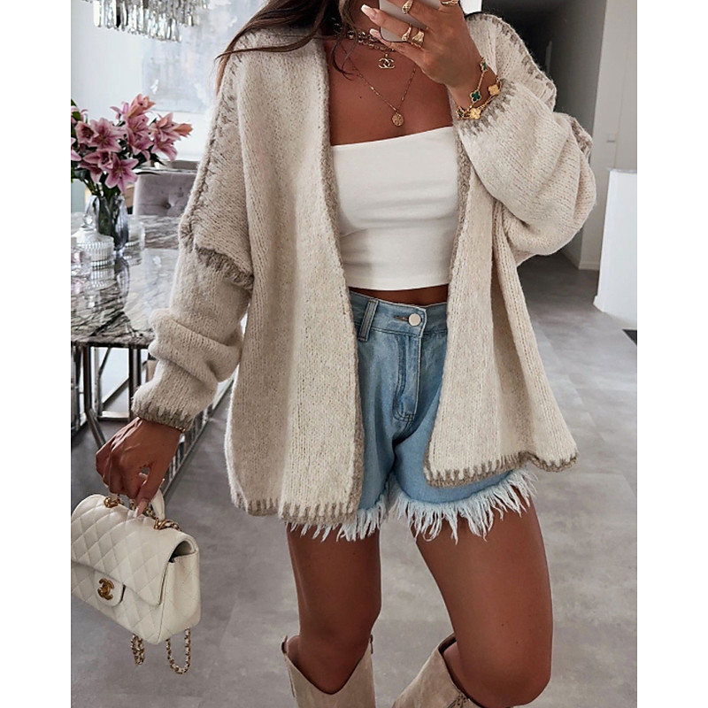 Women's Sweater Cardigan Streetwear Casual Color Block Crew Neck Patchwork Knitted Long Sleeve Regular Tops Knit Holiday Going out Weekend Black Pink Fall Winter