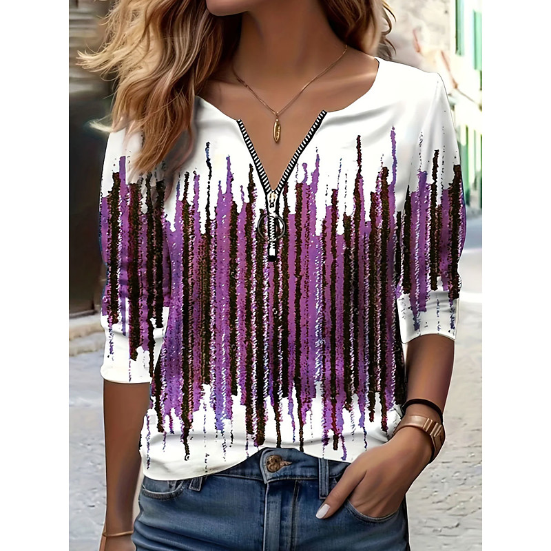 Women's T Shirt Ombre Graphic Vintage Fashion Stylish Long Sleeve Crew Neck Regular Tops Daily Zipper Print Blue Red Purple Green Spring Fall Winter