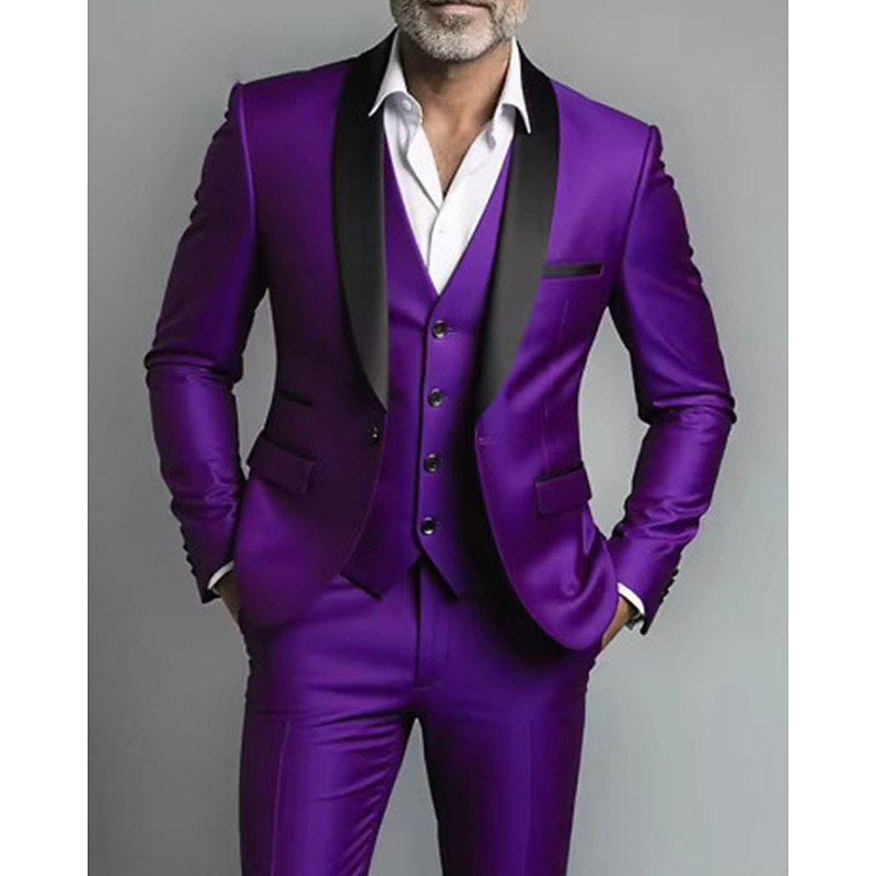 Men's BlazerVestDress Pants Blazer Business Work Wedding Fashion Streetwear Fall Winter Terylene Solid Color 3-Piece Single Breasted Blazer Black Champagne Pink Burgundy