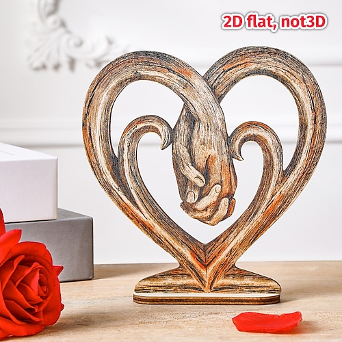 1 pezzo, un semplice e commovente pezzo decorativo per la casa da tenere in mano, un caldo pezzo decorativo da tavolo per interni in legno, adatto per matrimoni, San Valentino, anniversari e