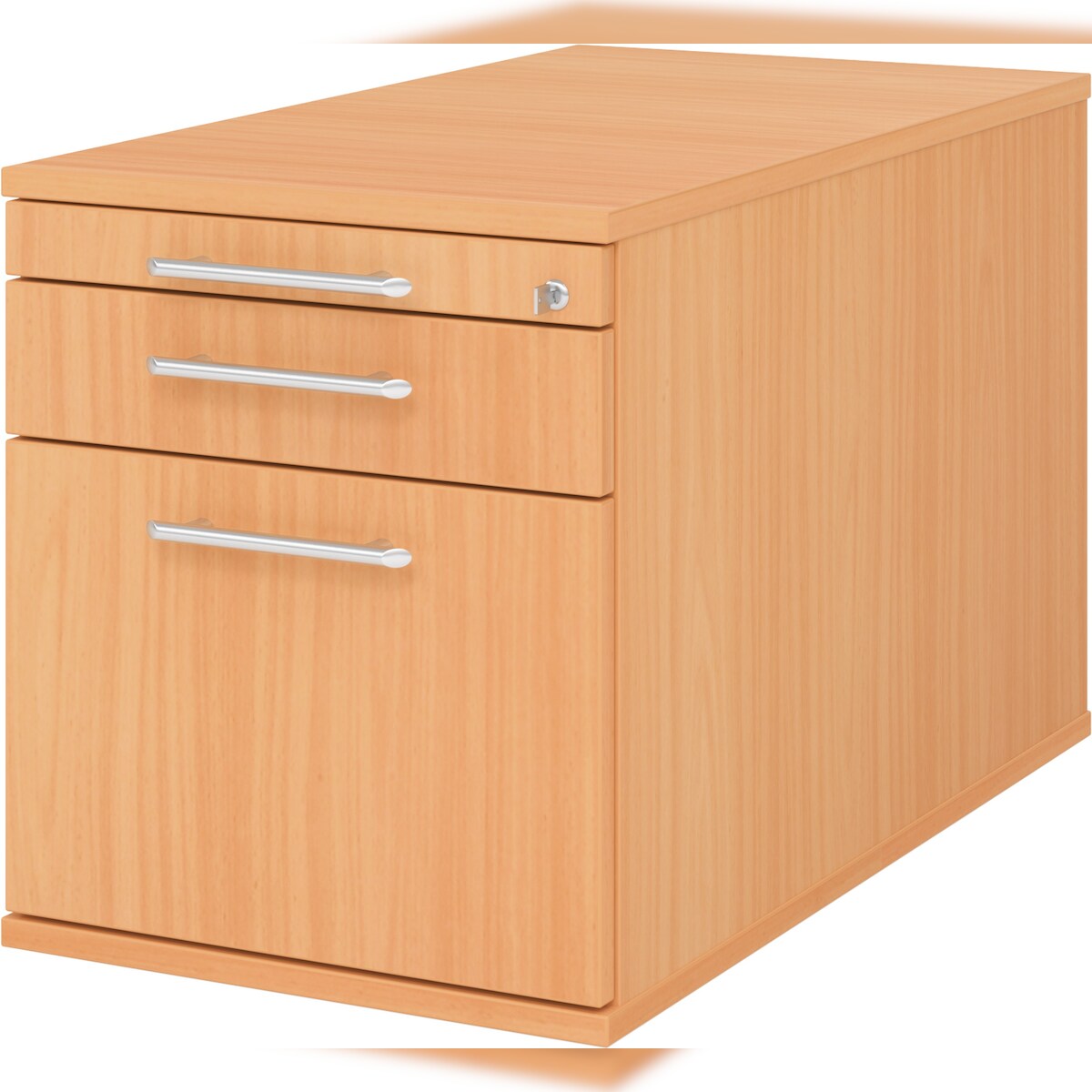 bümö Schreibtisch Schrank Büro mit Hängeregister für Hängeordner, Schubladenschrank Holz in Buche, Container mit Schubladen & Hängeregistratur -