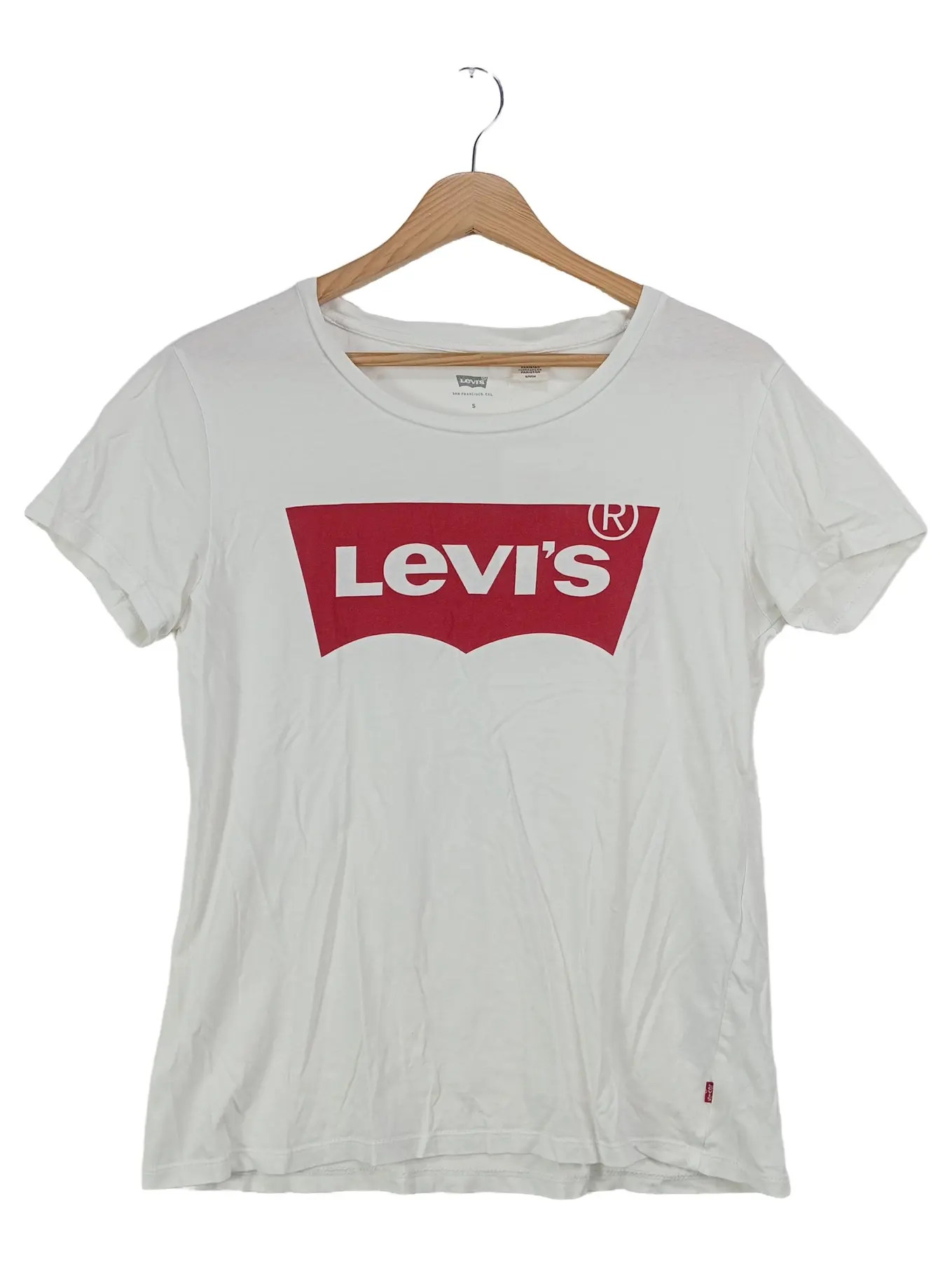 LEVI'S T-Shirt Damen S Weiß Baumwolle Logo