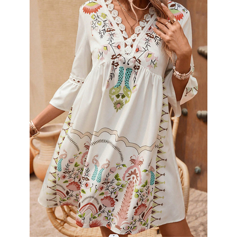 Women's Mini Dress Petite Dress Casual Dress Summer Dress Boho Dress Stylish Casual Vacation Daily Date Regular Fit Floral 3/4 Length Sleeve V Neck Black Red Fuchsia Apricot Summer