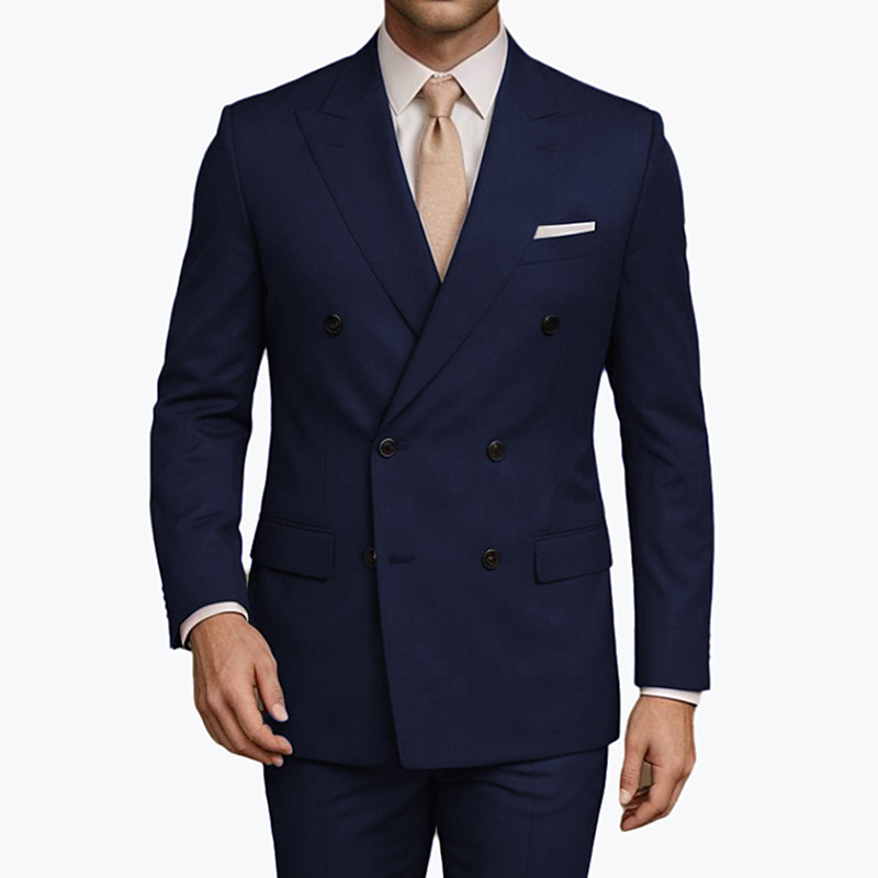 Men's Business Suits Peaked Lapel Navy Blue Formal WorkWear Solid Colored Standard Fit 2 Piece Double Breasted Six-buttons