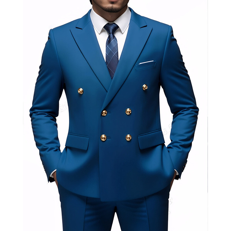 Men's Wedding Suits Peak Light Grey Dark Blue Business Formal Solid Colored Tailored Fit 2 Piece Double Breasted Six-buttons