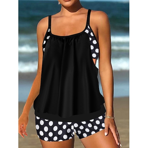 Damen Tankini 2-teiliges Badeanzug Shorts Bauchkontrolle Hohe Taille Schlank Rücklos Urlaub Strandbekleidung Polka Dot U-Ausschnitt Ärmelloses Badeanzug