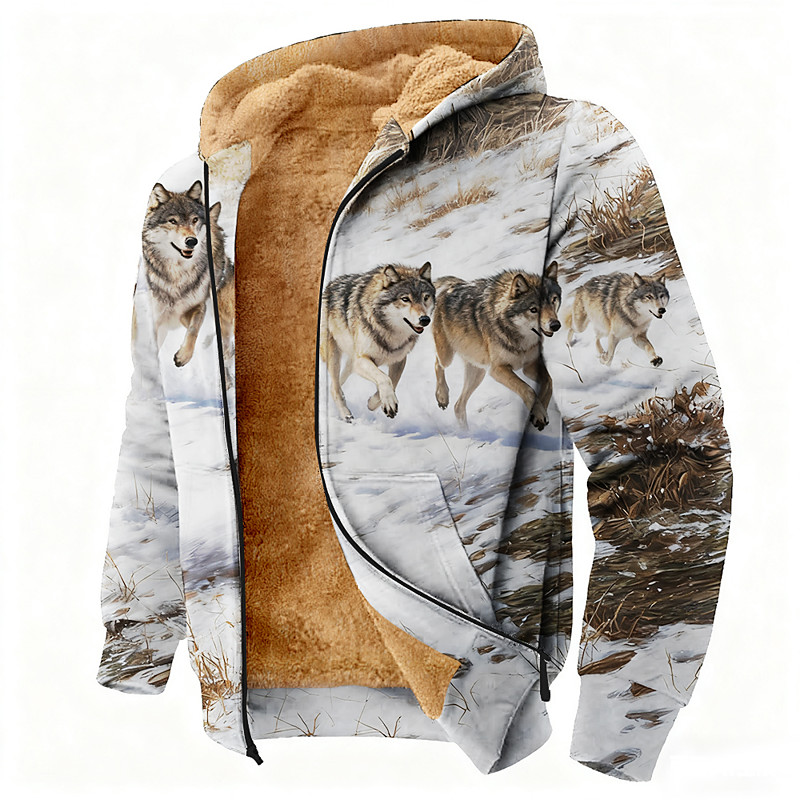 Men's Wolf 3D Print Fleece Hoodie Jacket Sweatshirt Classic Military Hunting Crew Neck Outdoor Camping Brown Brown 2 Brown 3 Zip Up Fall Winter Designer S M L XL 2XL 3XL