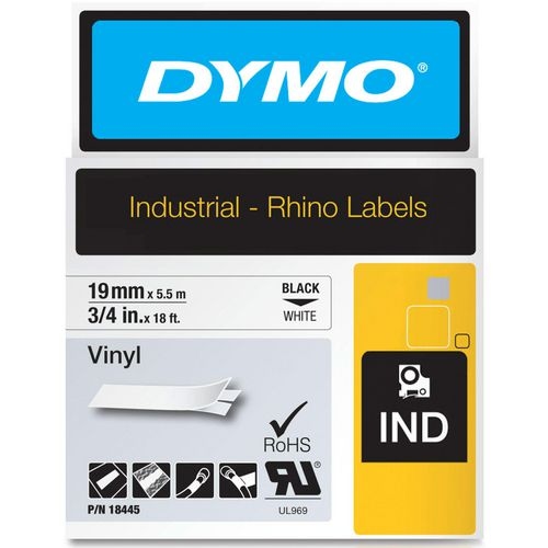 Dymo IND S0718620 / 18445 Authentic Rhino Vinyl Schriftband Selbstklebend Schwarzer Druck auf Weiß 19 mm x 5.5m