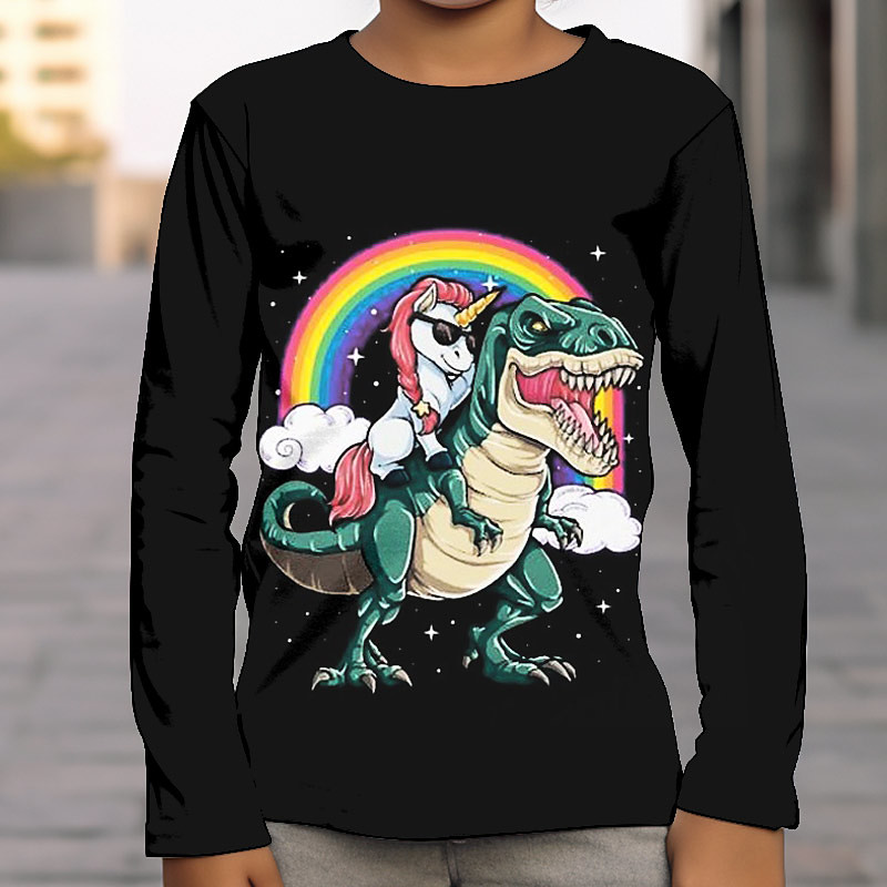 Boys 3D Graphic Galaxy Dinosaur T shirt Tee Long Sleeve 3D Print Summer Spring Fall Sports Fashion Streetwear Kids 3-12 Years Outdoor Casual Daily Regular Fit