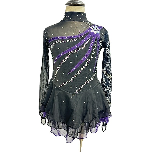 Vestito da pattinaggio artistico Per donna Da ragazza Pattinaggio sul ghiaccio Vestiti Completi Nero Viola Azzurro cielo Elastene Di pizzo Attività ricreative Competizione Vestiti da pattinaggio sul