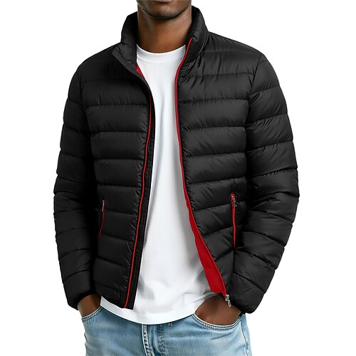 Per uomo Giacca imbottita Imbottito Tasca Cerniera completa Imbottito Natale All'aperto Streetwear Corto Neutro Moda Quotidiano Inverno Tinta unica Vinaccia Nero Blu marino Azzurro cielo Piumino