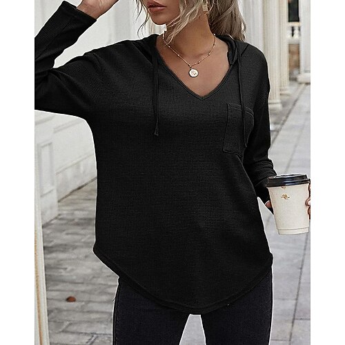 Per donna Felpa con cappuccio Semplice Moda Casual Manica Lunga Scollo a V Top Regolari Streetwear Abbigliamento Quotidiano Patchwork Nero Bianco Azzurro cielo Rosso rosa Autunno Inverno