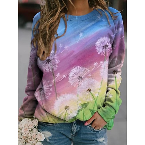 Blusa Donna Tunica V Collo Maniche Lunghe Boho Casual Top Estivi Floreale Grafica Top Regolari Stampa Quotidiana Nera Bianca Rosa Blu Blu Cielo