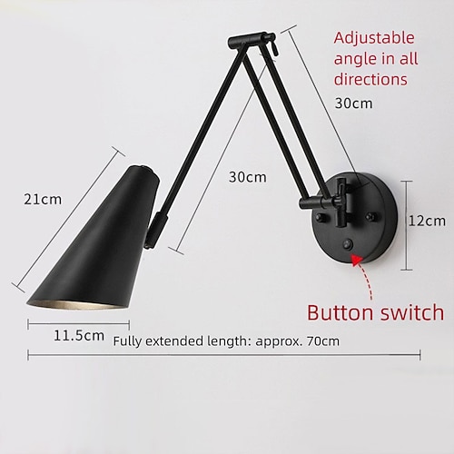 Lampada da parete vintage industriale con braccio oscillante, interruttore dimmerabile, regolabile, braccio lungo dorato, lampada da lettura da parete, lampada da parete per testiera da camera da