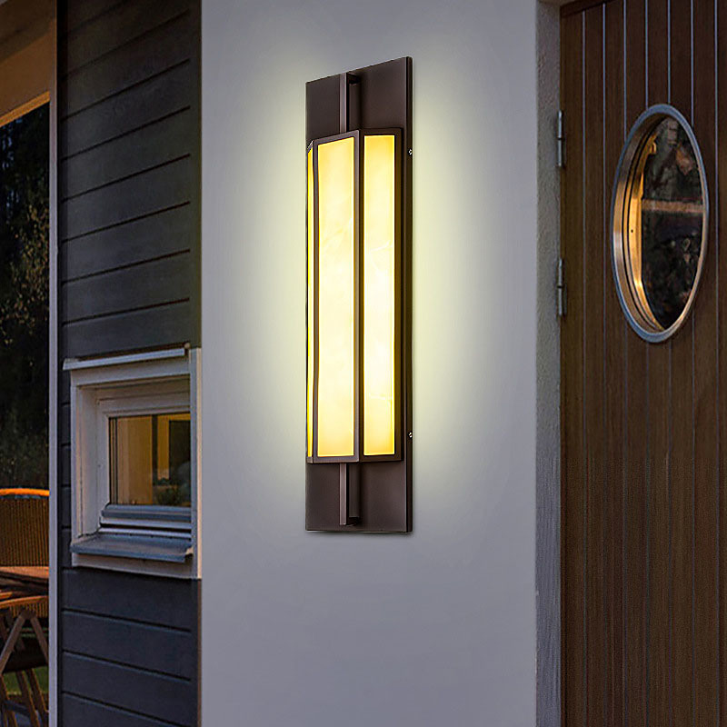 LED Outdoor Wall Light Black Modern Sconce Fixture Warm White 20W IP65 Rectangle Patio Marble Wall Lamp for Courtyard Porch Garage 42/63cm