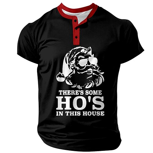 Herren Weihnachten Weihnachtsmann T Shirt Kurzarm 3D-Druck Mode Outdoor Athleisure Straße Sport im Freien Festival Sommer Frühling Schwarz Rote Blau Grün Henley Henley T-Shirt