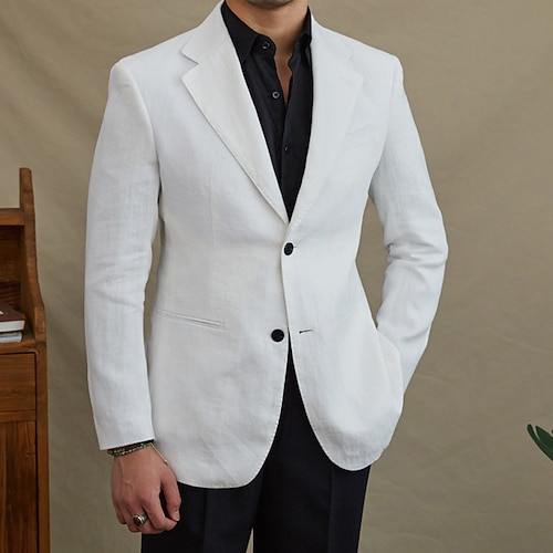 Herren Leinenblazer Blazer Geschäft Cocktailparty Hochzeitsfeier Mode Lässig Frühling Herbst 30 % Leinen 60% Polyester Einfach Tasche Knöpfe Bequem Einreihig Blazer Schwarz Weiß Braun Grün