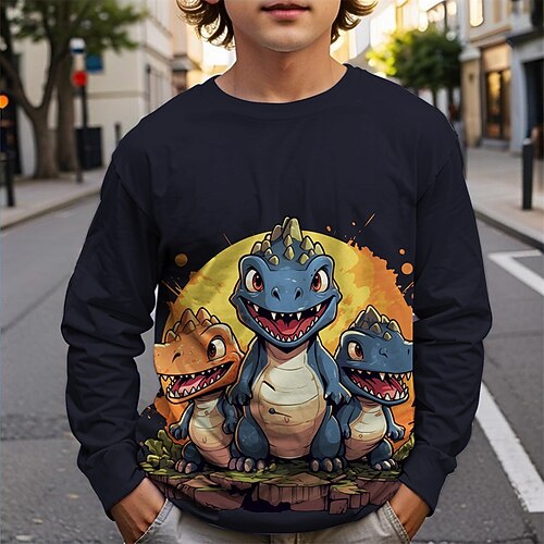 Jungen 3D Dinosaurier T-Shirt Langarm Frühling Herbst Mode Basic Kinder 4-12 Jahre Rundhalsausschnitt Outdoor Lässig Täglich Normale Passform