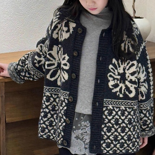 Bambini Ragazze Cardigan maglione Floreale All'aperto Manica Lunga Cardigan con Bottoni Moda 4-12 Anni Autunno Nero