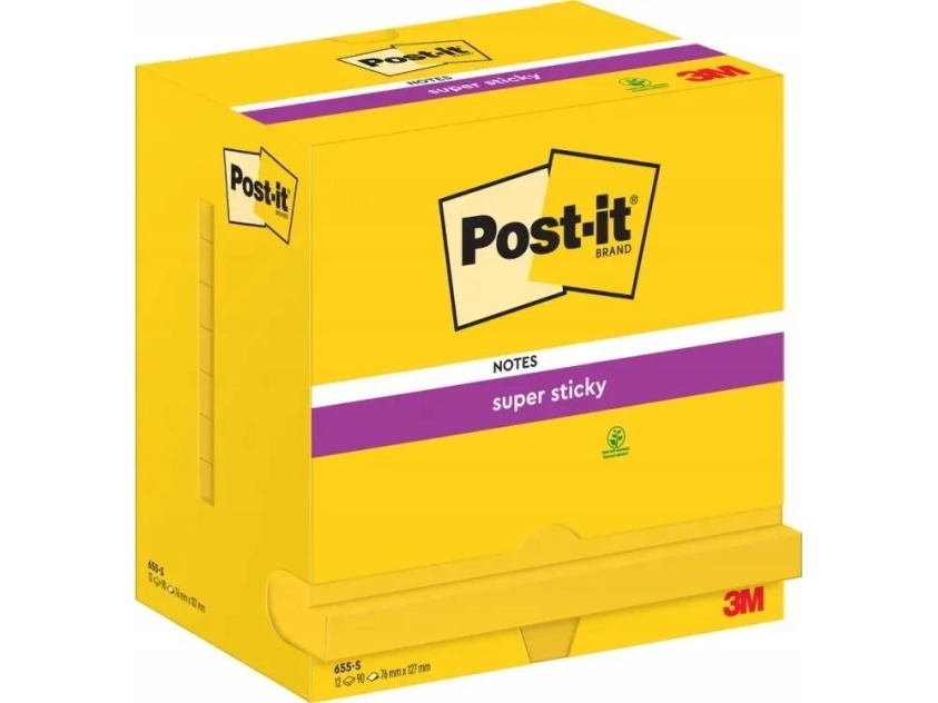 Post-It 3M POST-IT® Super Sticky Sticky Notes (655-S), 127x76mm, 12x90 ark, lysegul