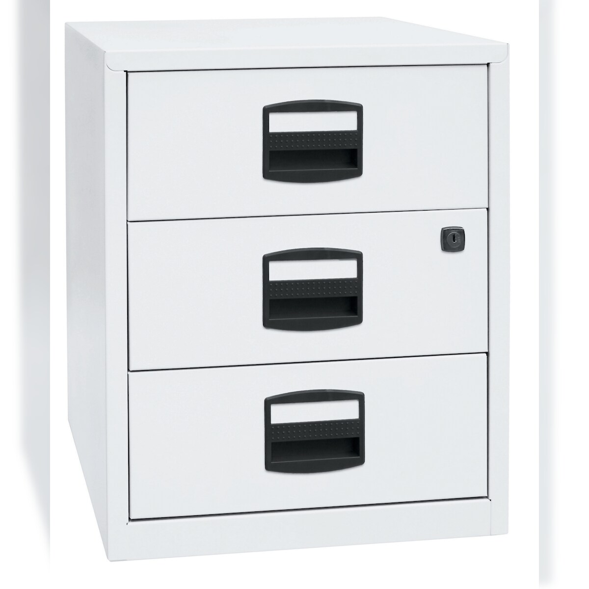Bisley Home Beistellschrank auf Rollen mit Schloss aus Stahlblech, 3 Universal-Schubladen abschließbar - Büroschrank für DIN A4 Dokumente, Kleinteile