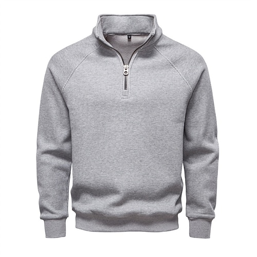Per uomo Maglia Felpa in pile Maglione Felpa con zip corta Maglia a coste Aalbicocca Nero Verde militare Blu marino Grigio chiaro Colletto Mao Semplice Testurizzato Sport Outdoor Casuale Quotidiano