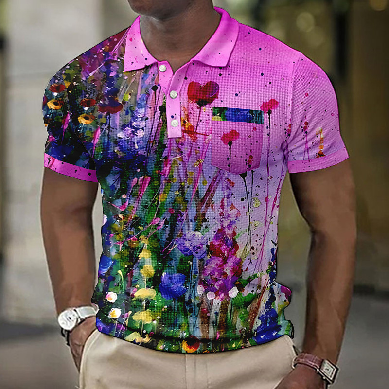 Men's Polo Sports Polo Shirts Casual Sports Turndown Short Sleeve Geometric Golf Buttons Summer Violet Black Blue Light Blue Polo