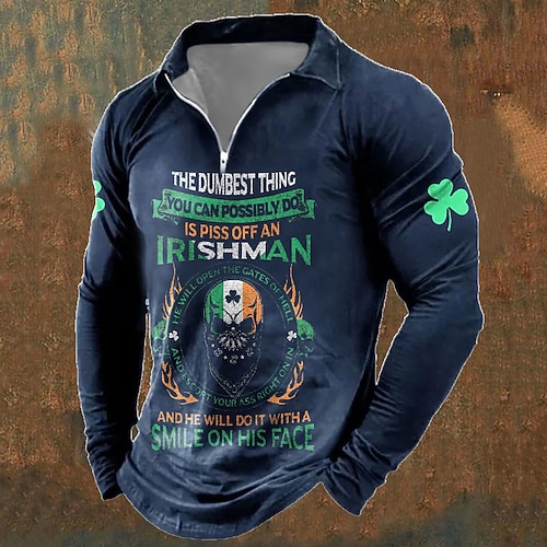 St. Patrick Herren Vierblättriges Kleeblatt St. Patrick Day Polo Poloshirts Reißverschluss-Polo Langarm Polo-Shirts Umlegekragen Reißverschluss Lässig Outdoor St.Patrick's Day Alltagstauglich