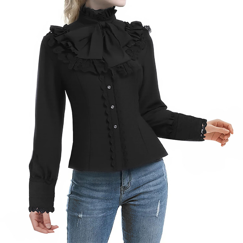 Retro Vintage Rococo Medieval Blouse / Shirt Ruffle Sleeve Princess Vampire Queen Lace Bow Solid Colored Fancy Dress Women's Pirate Royal Steampunk Masquerade Casual Daily Adults' Blouses