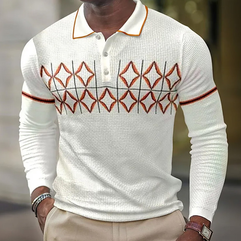 Men's Color Block Geometic Waffle Polo Shirts Long Sleeve Polo Shirts Collared Shirts Business Casual Business Wear to work Daily Wear Buttons Spring Fall Winter White Light Brown Brown