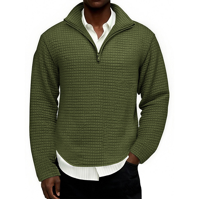 Men's Waffle Polo Shirt Quarter Zip Polo Daily Holiday Quarter Zip Long Sleeve Fashion Modern Plain Front Pocket Spring Fall Regular Fit Black White Navy Blue Light Grey Beige Waffle Polo Shirt