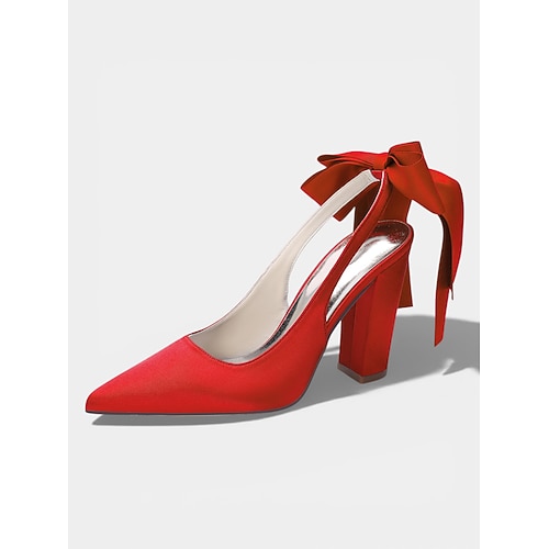 Elfenbeinfarbene Slingback-Pumps mit spitzer Zehenpartie und Schleife, elegante Brautschuhe aus Satin für die kirchliche Trauung