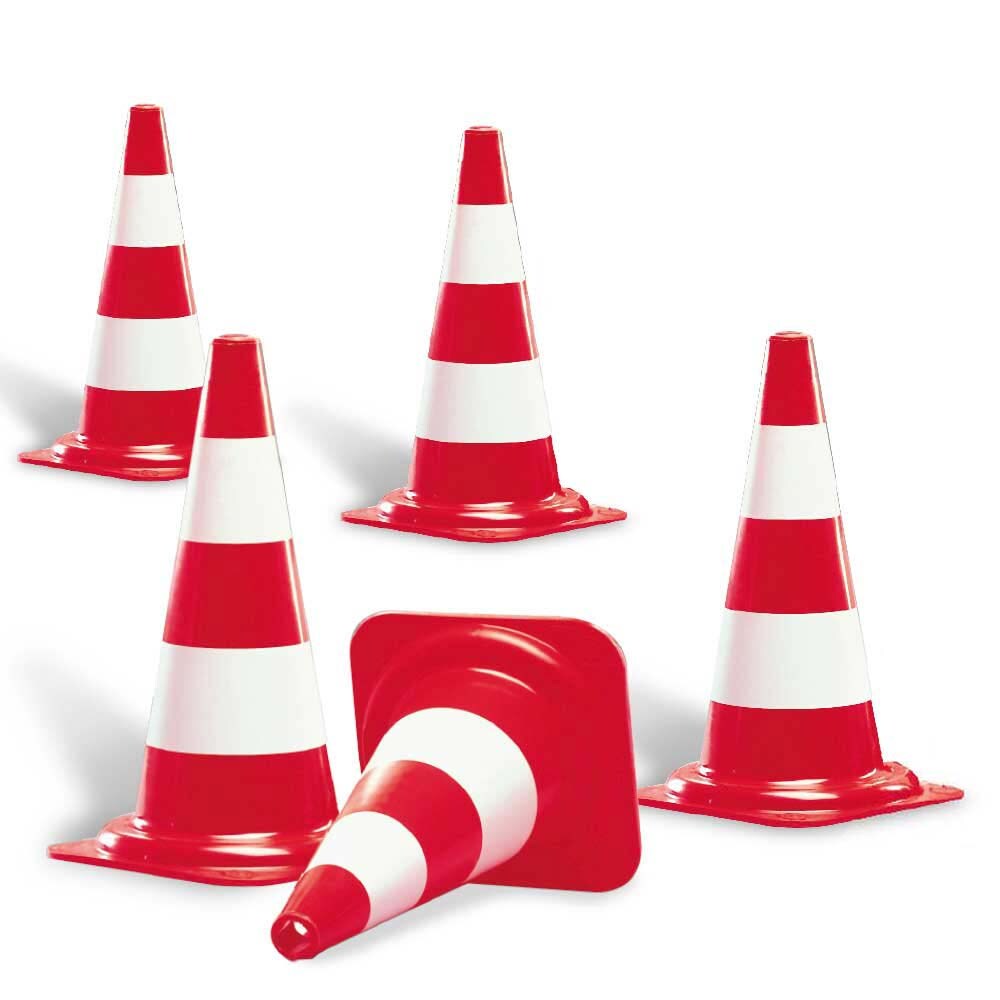 BRB Set, 5x Leitkegel in Farbe rot - mit 2 weißen Streifen - Höhe 500 mm