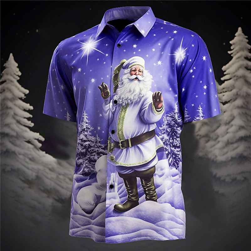 Weihnachten herren santa claus gedruckt hemden santa claus casual täglichen kleidung ausgehen herbstamp;Winter Turndown Langarm dunkelrot, weiß, rot S, M, L 4-Wege-Stretch-Stoff-Shirt