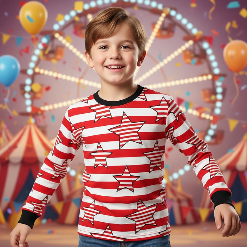 Carnival Costume 2026 Boys' 3D Striped Stars T shirt Tee Long Sleeve 3D Print Spring Fall Sports Fashion Streetwear Kids 4-12 Years Crew Neck Casual Daily Outdoor Regular Fit