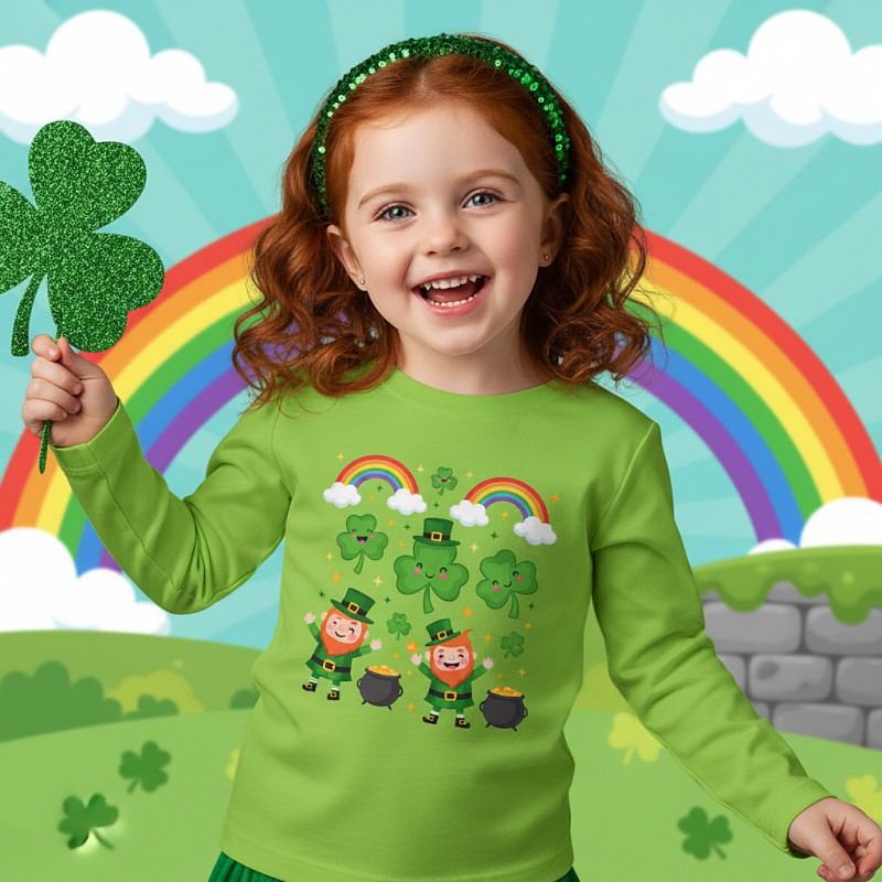 St. Paddy's Day Girls' 3D Graphic Rainbow St. Patrick's Day T shirt Tee Long Sleeve 3D Print Spring Fall Sports Fashion Streetwear Kids 4-12 Years Crew Neck Casual Daily Outdoor Regular Fit