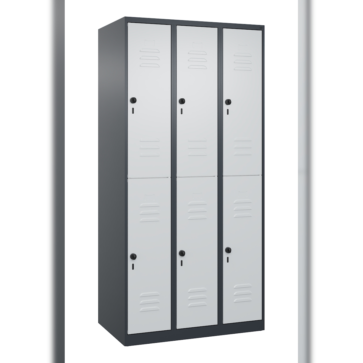 C+P Spind Classic PLUS, 6 Abteile, HxBxT 185x90x50cm, Sicherheitsdrehriegel, Anthrazit/Hellgrau von PROREGAL