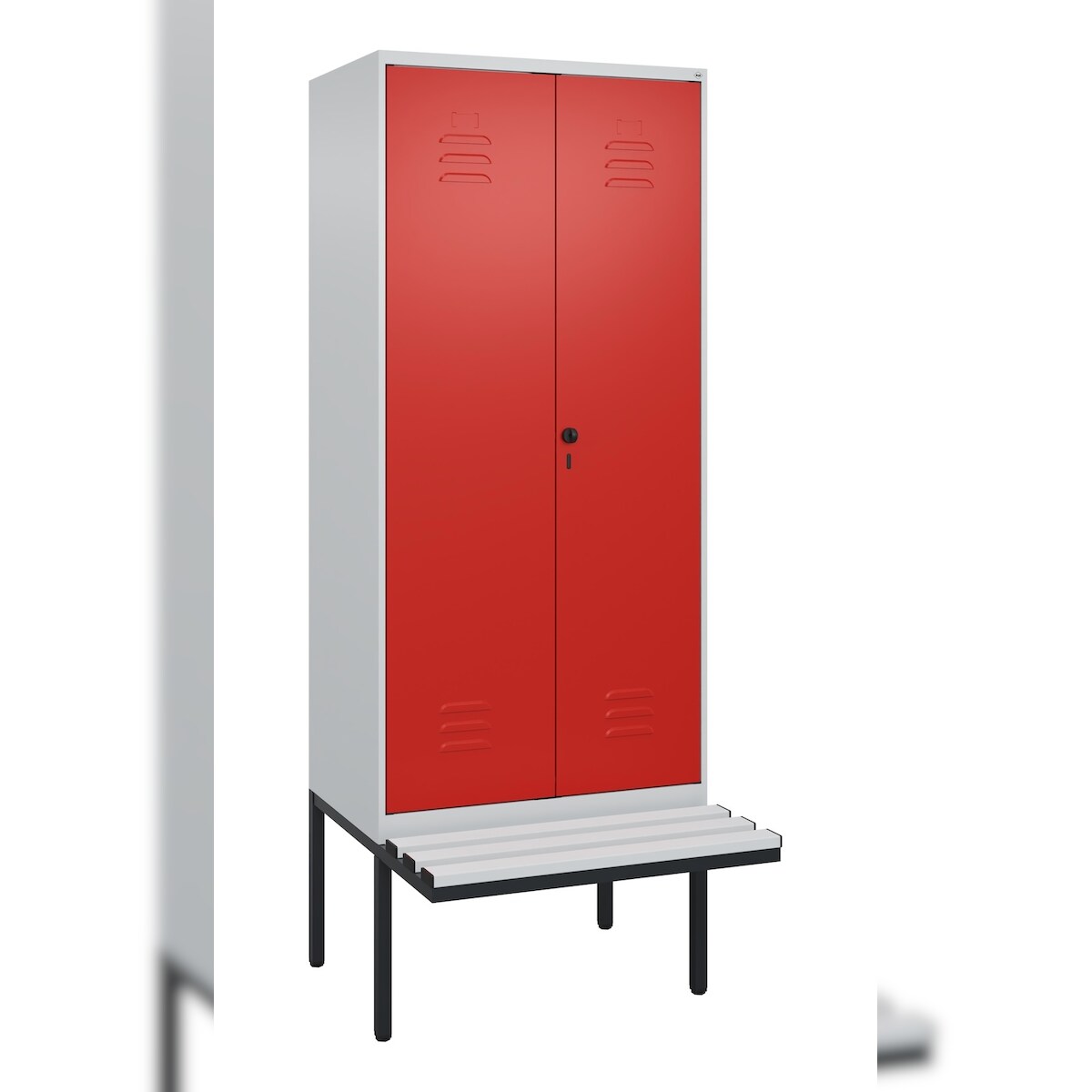 C+P Doppel-Spind Classic PLUS Buche untergebaute Bank 2 Abteile, HxBxT 212x60x82cm, Sicherheitsdrehriegel, Hellgrau/Rot von PROREGAL