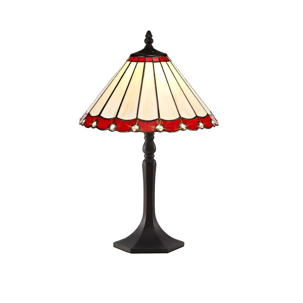 Sleek 1 Light Octagonal Table Lamp E27 With 30cm Tiffany Shade Red/Cream/Crystal/Aged Antique Brass Luxuria